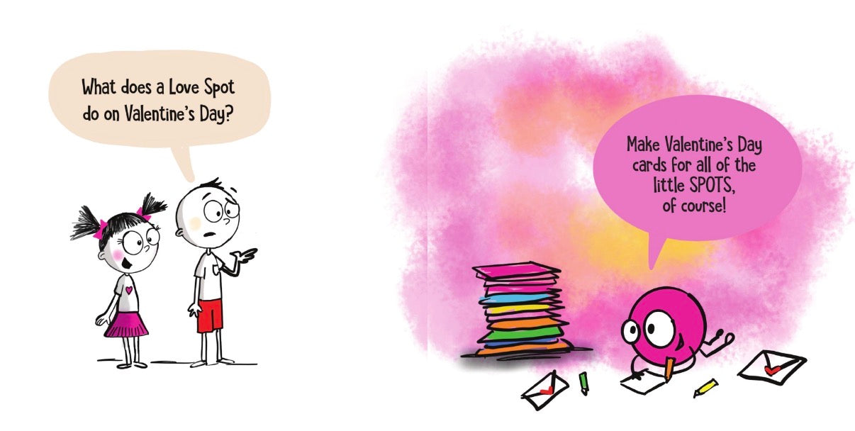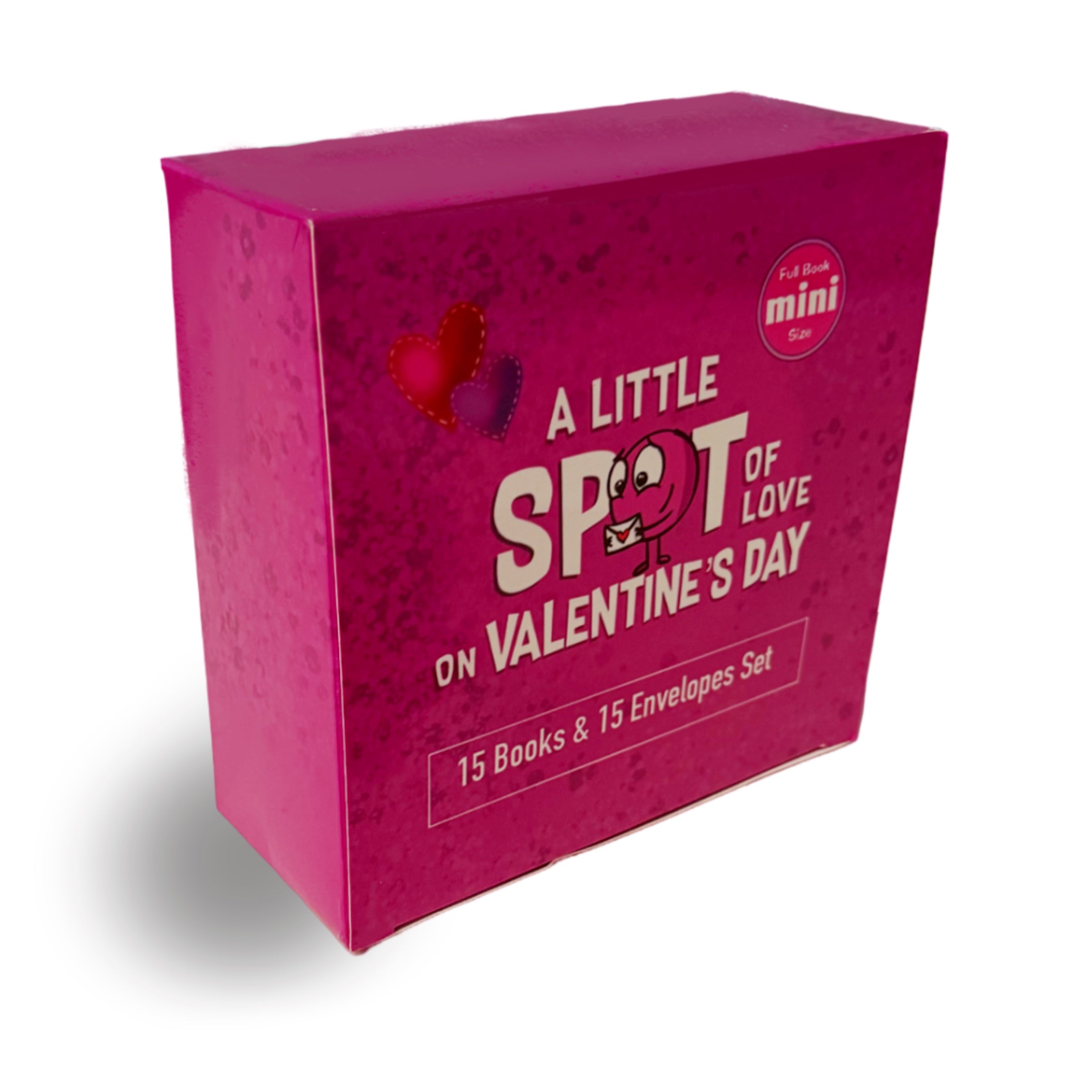 It’s 15 of your favorite book, A Little SPOT of Love on Valentine’s Day” in a “ mini” size perfect for the classroom or party gifts! Comes with Envelopes and Stickers too!