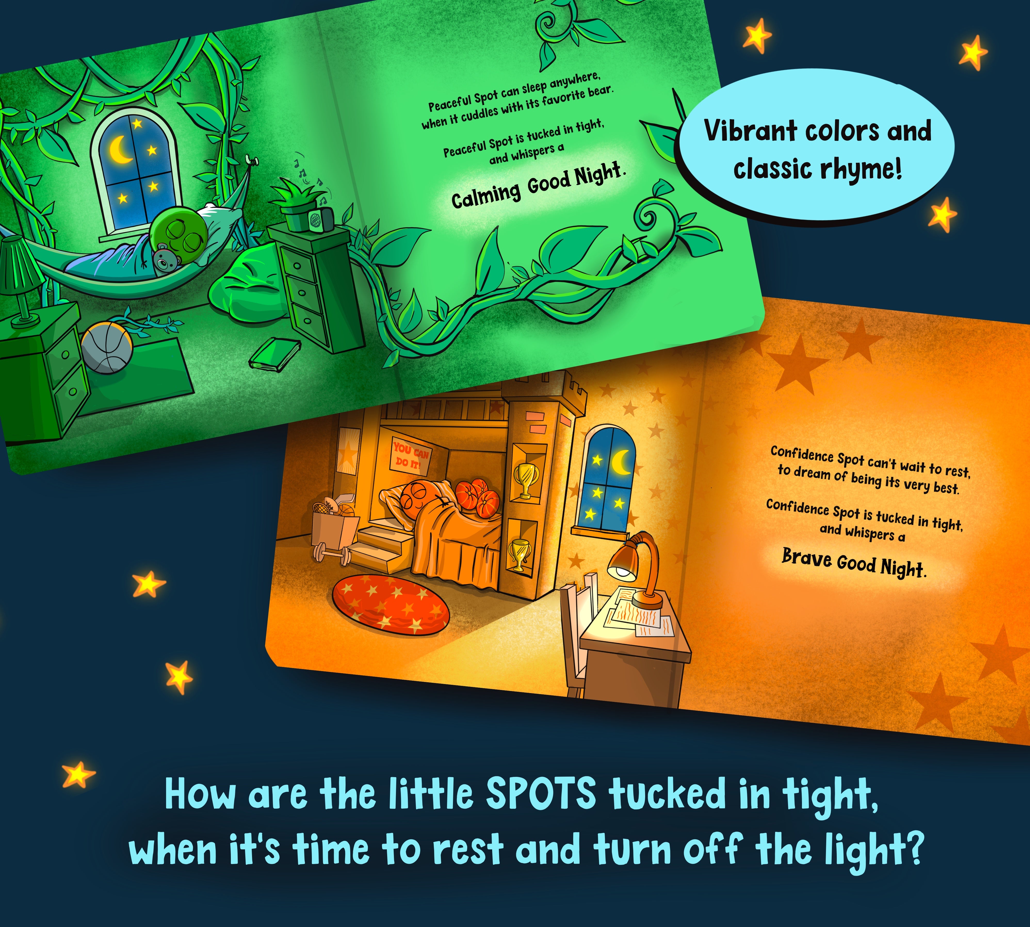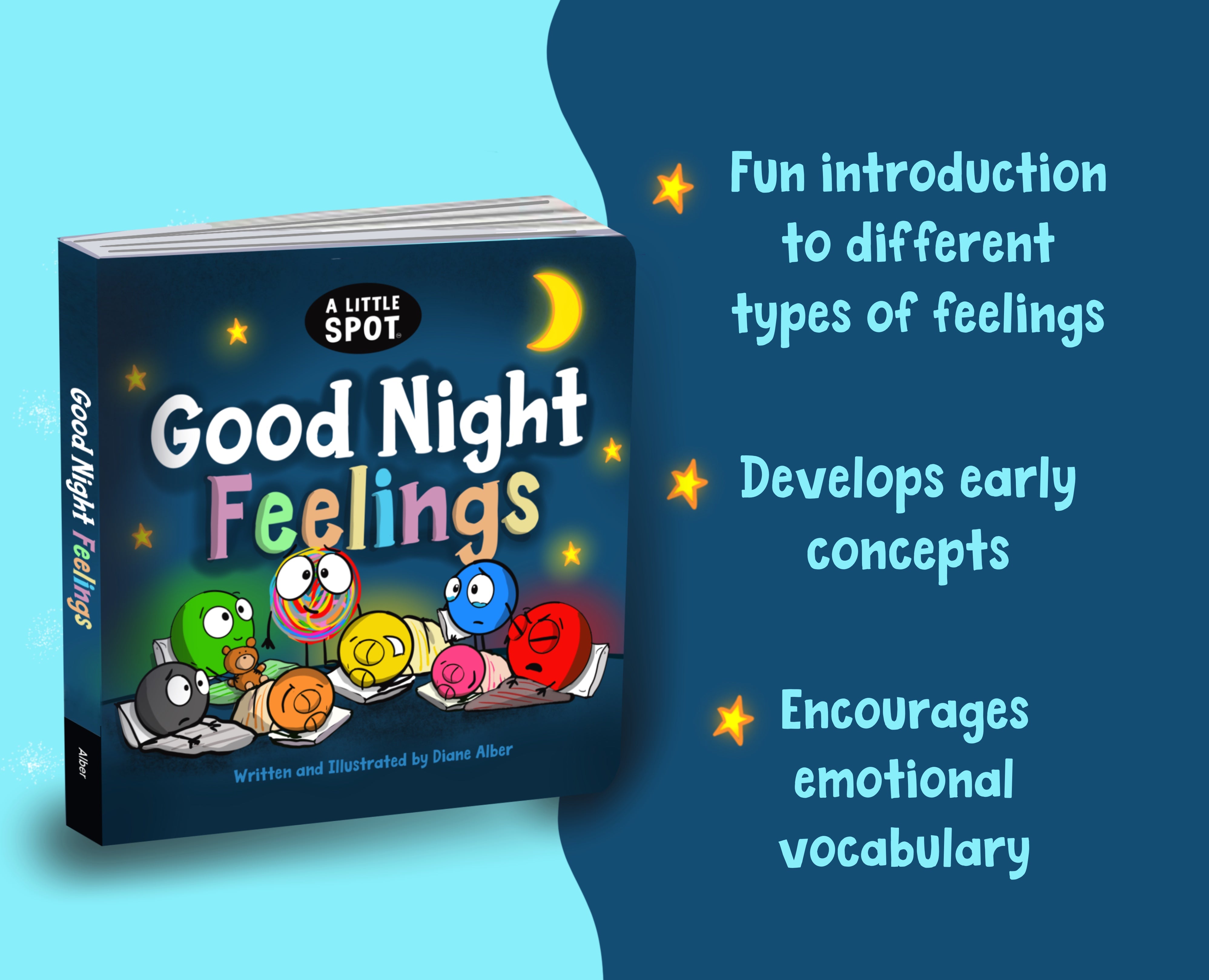Say goodnight to your favorite SPOTs in this colorful bedtime story that will help your little ones put their feelings and emotions to sleep. The A Little SPOT series of books was developed to help children learn about the various feelings and emotions we all encounter every day. Once children can identify their emotions, they can learn how to manage them in a healthy way. This colorful book is a perfect fit for little hands and young readers.