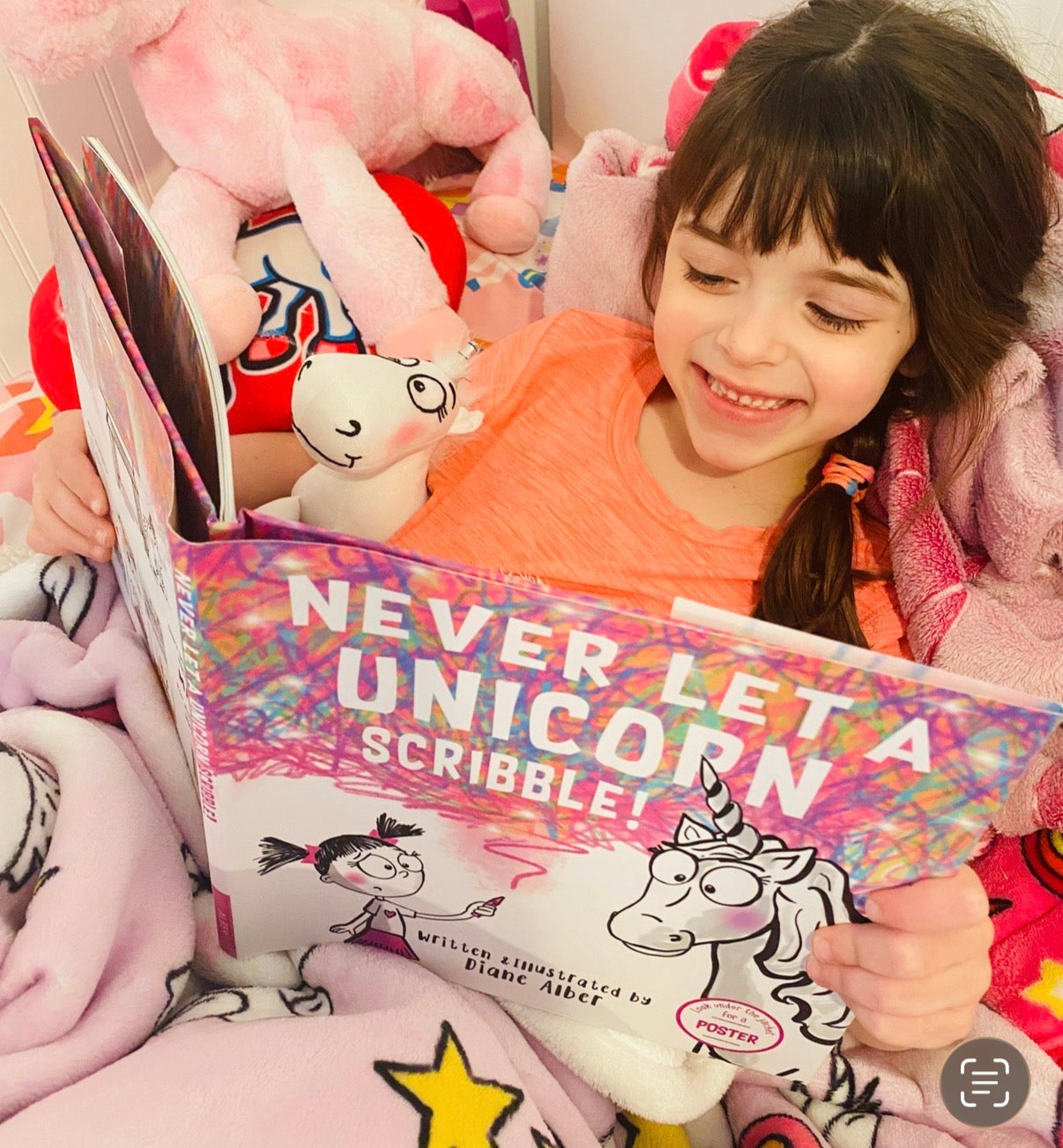 Unicorns can run on rainbows, so why can't they scribble? This story is about a little girl who keeps hearing, "Never let a unicorn scribble!" But in her heart believes that people just don't understand how beautiful scribbling can be. She keeps trying to teach her unicorn to scribble but soon realizes this is more difficult then she anticipated. But instead of giving up, she uses her imagination to come up with a creative way to get her unicorn to scribble, at first it looks like it was complete disaster but ends up being truly magical!