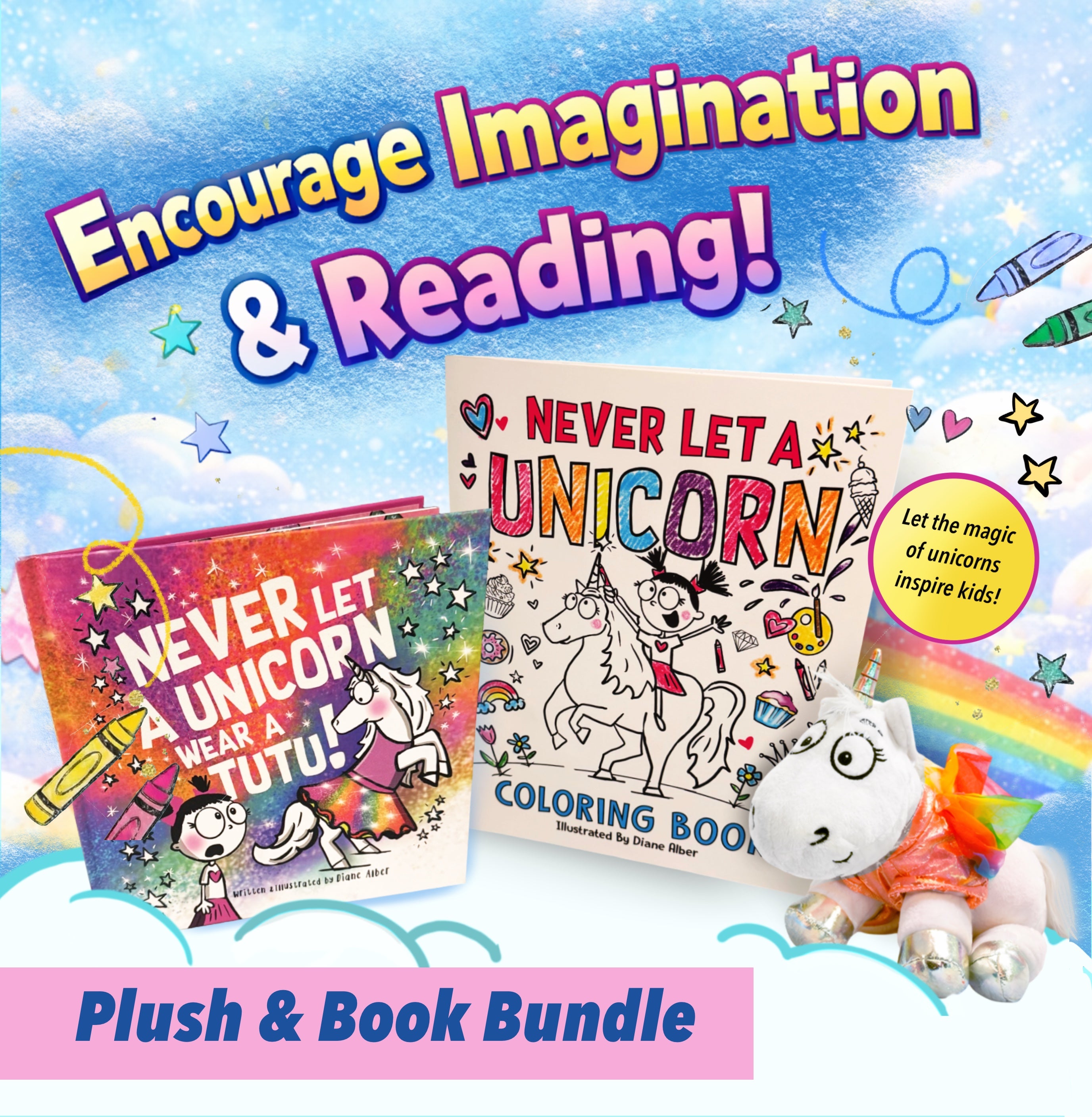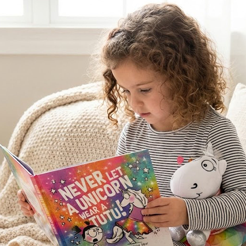 This exclusive bundle brings the hilarious story of Never Let a Unicorn Wear a Tutu to life. It’s not just a book—it’s a full experience. Your little one can read the story, cuddle their very own unicorn friend, and unleash their creativity with the matching coloring book.